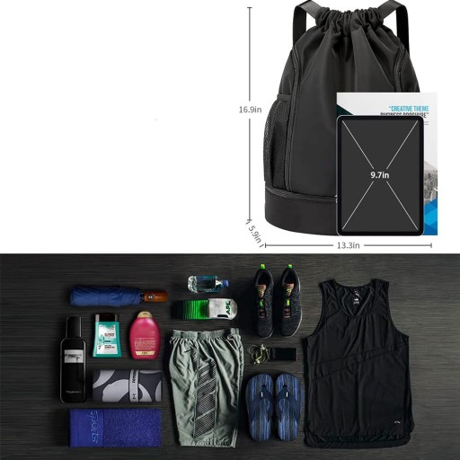 🎒 Rozmiar torby gimnastycznej ze sznurkiem wynosi 16.9"x13.3"x5.9" , w której z łatwością pomieścisz wszystkie rzeczy potrzebne do zajęć sportowych, pływania, studia fitness i innych sportów.