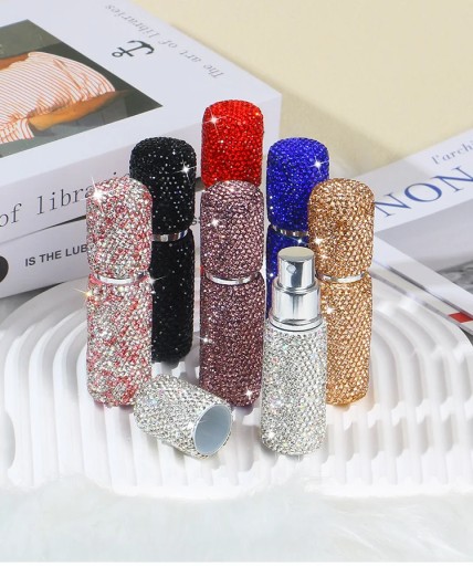 HIGH QUALITY: A set of small empty spray bottles made of high quality rhinestone studded material, durable, reusable and easy to store. Not easy to leak, easy to fill.