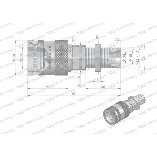 Szybkozłącze hydrauliczne gniazdo long M22x1.5 gwint zewnętrzny EURO PUSH-PULL Waryński.