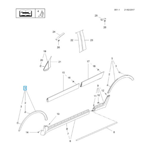 Oryginalna listwa ochronna nadkola Opel Mokka LEWY przód 95275448