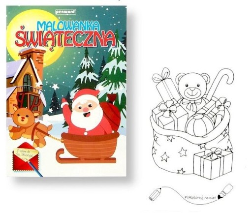 Kolorowanie cudownie wypełnia świąteczny czas, tradycyjna malowanka to mnóstwo zabawy. Doskonały dodatek do prezentu, który umili świąteczne chwile każdego dziecka.
