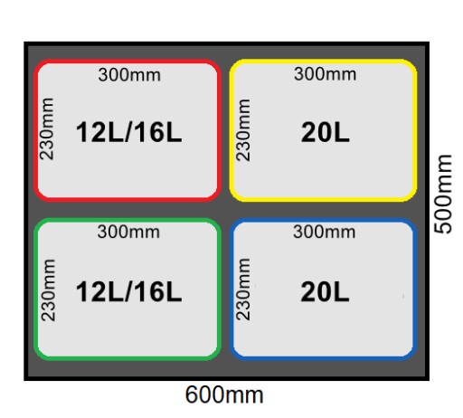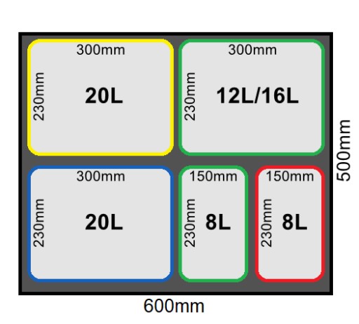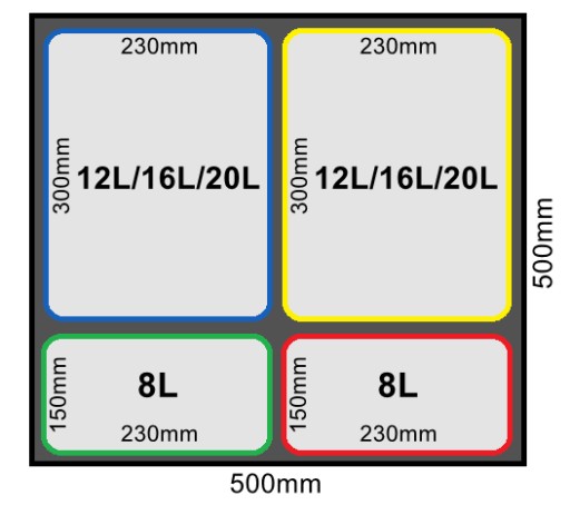 Schemat zestawu koszy do szuflady o wymiarach 500mmx500mm