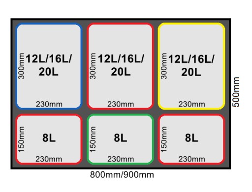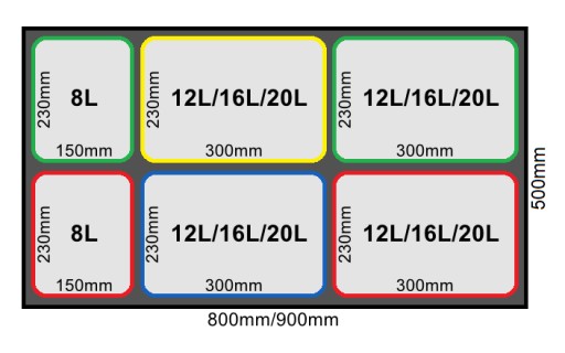 Schemat zestawu koszy do szuflady o szerokości 800mm lub 900mm i głębokości 500mm