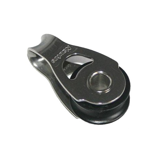 Bloczek pojedynczy z zaczepem, łożyskowany (łożysko igiełkowe) wykonany ze stali nierdzewnej.