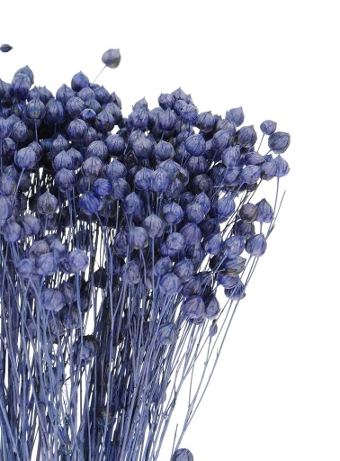 Len to roślina, która znana jest przede wszystkim jako włókno do produkcji ubrań. Tymczasem jest to również roślina ozdobna o cienkich gałązkach zakończonych kulistymi torebkami. Suszony len występuje zarówno w wersji naturalnej, jak i bielonej oraz barwionej. Len dostępny w tej ofercie ma granatowy kolor. Już jeden pęczek suszonego lnu w wazonie wygląda bardzo obficie i atrakcyjnie.