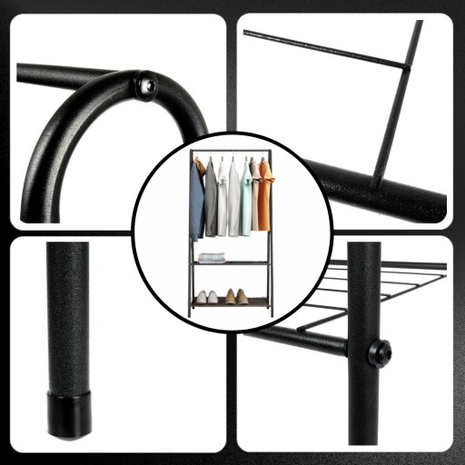 - FUNKCJONALNY – wieszak na ubrania jest funkcjonalny i niezwykle pojemny – może pomieścić sporą część garderoby, a przy tym zajmuje niewiele miejsca w mieszkaniu