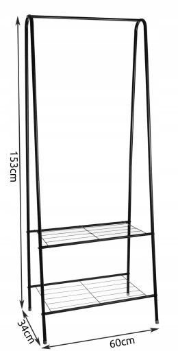 CZARNY WIESZAK STOJĄCY NA UBRANIA STOJAK NA CIUCHY + 2X PÓŁKI 60x153 cm