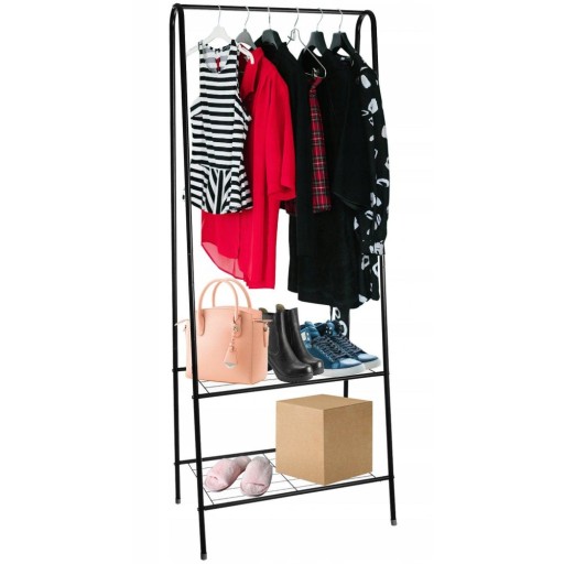 ЧЕРНАЯ ВЕШАЛКА ДЛЯ ОДЕЖДЫ ВЕШАЛКА ДЛЯ ОДЕЖДЫ + 2 ПОЛКИ 60x153 см