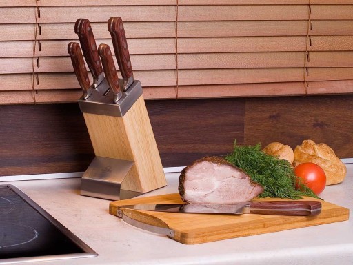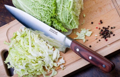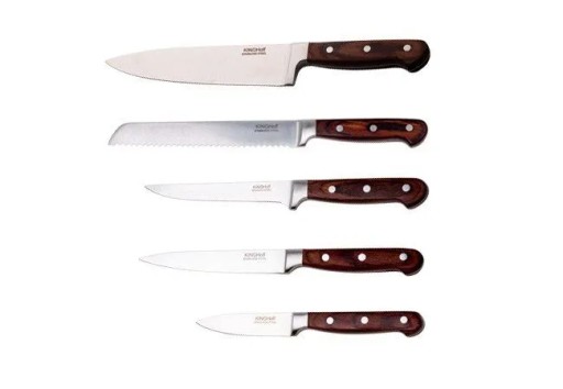 6 elementowy zestaw noży w bloku firmy KINGHOFF. Przeznaczone do porcjowania mięsa i ryb, krojenia pieczywa oraz obierania i siekania warzyw. Noże wykonane wysokiej jakości stali nierdzewnej Ferrinox 18/10 o wysokiej zawartości węgla 1.4028/X30Cr13. Istotną cechą tej stali jest fakt, że jest odporna na wszelkiego rodzaju zadrapania, zarysowania, charakteryzuje się zwiększoną odpornością na ścieranie i korozję. Ostrze wykonane ze stali chromowo- molibdenowej, wyjątkowo twardej, odpornej na odkształcenia, podatnej na ostrzenie. Nóż został wykonany zgodnie z tradycyjną sztuką z jednego kawałka stali. Uchwyty są ergonomiczne, obłożone drewnianą okładziną i umożliwiają bezpieczne trzymanie bez poślizgu.