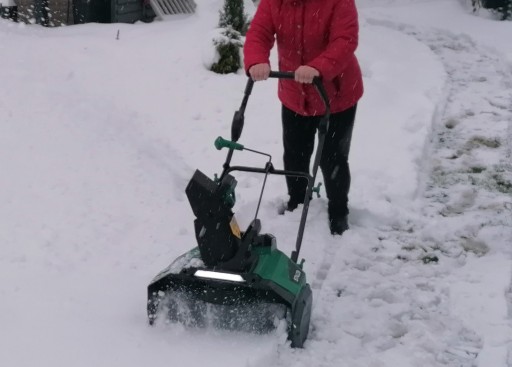 Silnik pracuje cicho i nie emituje spalin, dlatego można stosować odśnieżarkę w pobliżu zabudowań, lasów czy parków.