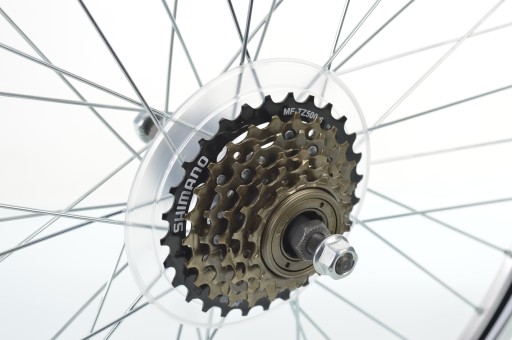 - W zestawie z kołem wolnobieg SHIMANO MF-TZ500-6 rzędowy (założony i dokręcony gotowy do użytkowania) oraz protektor szprych zapobiegający utknięcia łańcucha pomiędzy wolnobiegiem a szprychami przy tym chroniąc je same