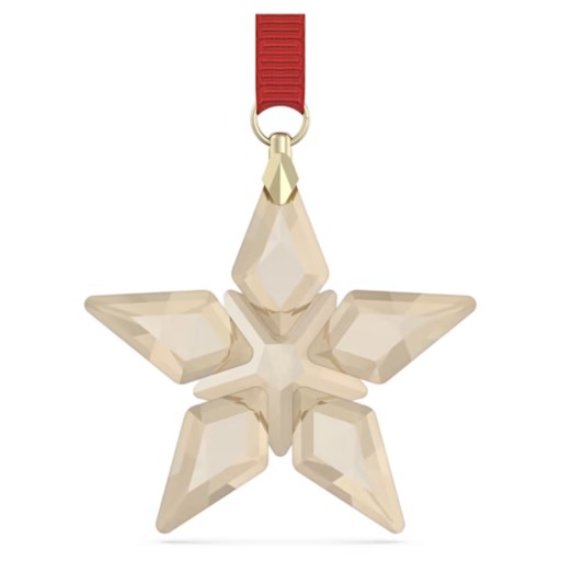 Rozkoszuj się subtelnością magii świąt dzięki tej małej Ozdobie Festive Annual Edition, inspirowanej harmonijnym współistnieniem przyrody i nauki. Ozdoba ożywa dzięki niepowtarzalnemu savoir-faire i mistrzowskiej precyzji, z których słynie marka Swarovski. Mieniący się blaskiem 97 faset wzór na rok 2023 w kształcie gwiazdy w kolorze złota jest zawieszony na czerwonej wstążce o splocie rypsowym, a całości dopełniają akcenty pokryte powłoką w kolorze złota. Ta cudowna ozdoba może stać się eleganckim prezentem dla bliskiej osoby lub rozświetlić wnętrze Twojego domu świątecznym blaskiem. Przedmiot dekoracyjny. Produkt nie jest zabawką. Nie jest odpowiedni dla dzieci w wieku poniżej 15 lat.