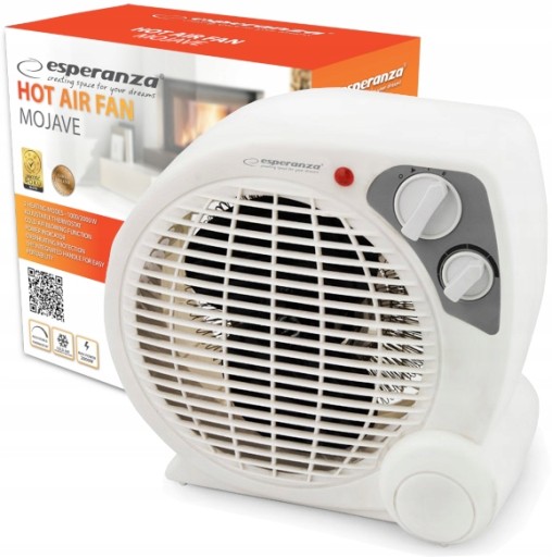 Niezastąpiony termowentylator dwufunkcyjny. Zastosowanie przez cały rok dzięki funkcji grzejnika oraz wentylatora. Z tego względu termowentylator sprawdza się zarówno w czasie chłodnych jak i gorących dni. Posiada wyłącznik 0, tryb chłodnego nawiewu oraz dwa poziomy mocy nagrzewania: 1000W i TURBO 2000W.