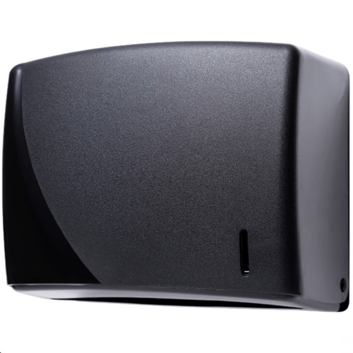 Pojemnik dozownik na ręczniki składane typu ZZ wykonany z wzmocnionego tworzywa sztucznego ABS w kolorze czarnym.