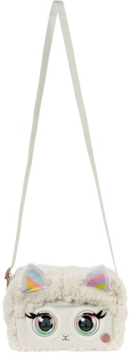 Ta urocza niewielka puszysta torebka jest w kolorystyce beżowej. Ma wyjątkowo miękki materiał Sherpa, duże oczy inspirowane pop-artem z długimi rzęsami. Posiada także krótkie uszka w kolorze tęczy.