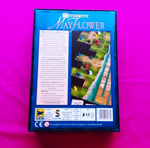 Gra planszowa Carcassonne: MayFlower - unikatowa gra od Wydawnictwa Hans um Gluck z dodaną przez wydawcę polską instrukcją.
