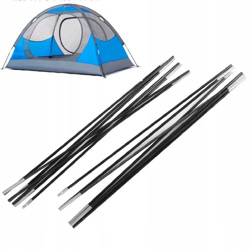 Wieloczęściowy składany słupek namiotowy, zawiera 2 pręty (długość 3,96 m), każdy pręt jest podzielony na 7 segmentów (każdy o długości 60 cm).