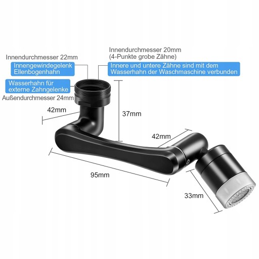 Głowica aeratora zlewu o kącie 1080 °