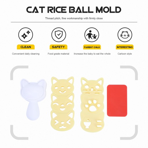 ✅Ten przedmiot to doskonałe i kompletne narzędzie do formowania kulek ryżowych, zaprojektowane w kształcie kota. Możesz go użyć do przygotowania pysznego i pięknego lunchu dla swoich dzieci i przynieść szczęśliwy posiłek swojej rodzinie. Wykonane z najwyższej jakości materiału, są bezpieczne i trwałe i praktyczne.