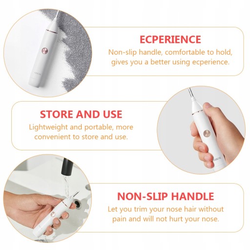 Czy nadal martwisz się, że włosy w nosie wpłyną na Twój wizerunek? W takim razie nie możesz przegapić naszego zestawu do przycinania włosów w nosie. Wykonany z materiału ABS, jest i trwały. Elektryczna konstrukcja, iIt może skutecznie czyścić włosy w nosie, oszczędzając czas i pracę.