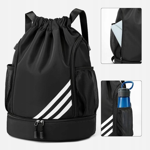 ✅ 【Konstrukcja z wieloma kieszeniami】: boczne kieszenie z siatki z elastycznymi paskami po obu stronach plecaka sportowego mogą pomieścić butelki z wodą, parasole; przednia kieszeń do przechowywania chusteczek higienicznych i przyborów toaletowych; spód to niezależna przegroda na buty; wewnętrzna kieszeń na suwak w kieszeń na sznurek, która jest wystarczająco duża, aby pomieścić małe wartości, takie jak zegarki sportowe, portfele itp., aby uniknąć kieszonkowców.