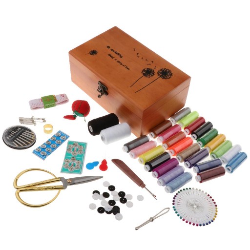 Profesjonalny zestaw do szycia z drewnianym pudełkiem do przechowywania materiałów do szycia w domu