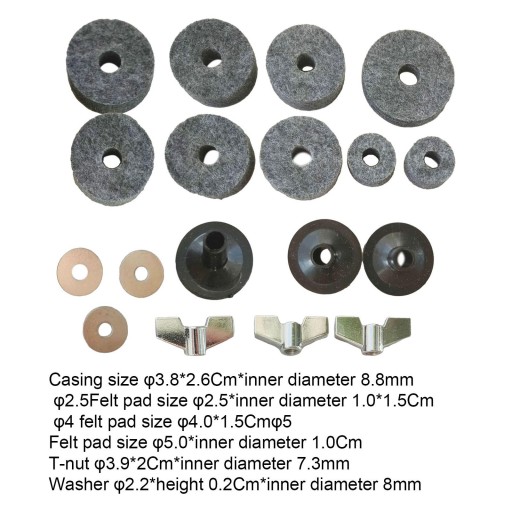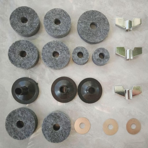 [Funkcje]: Zestawy filców do talerzy, zapobiegają kolizjom talerzy z metalem, dobrze chronią talerze oraz poprawiają jakość dźwięku i wydajność talerzy.
