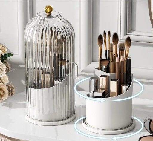 Ten organizer został wyposażony w obrotowy mechanizm, dzięki czemu możesz swobodnie obracać go o 360 stopni. To ułatwia dostęp do wszystkich przechowywanych kosmetyków i pędzli bez konieczności przekopywania się przez zawartość. Obracając go, możesz łatwo znaleźć potrzebny produkt lub pędzel.