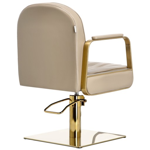 Fotel charakteryzuje się eleganckim i ergonomicznym designem, który pozwala na wygodną pracę fryzjera oraz relaks klientów.