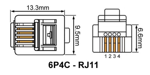 - Złącza: 2x RJ11/6P4C męski