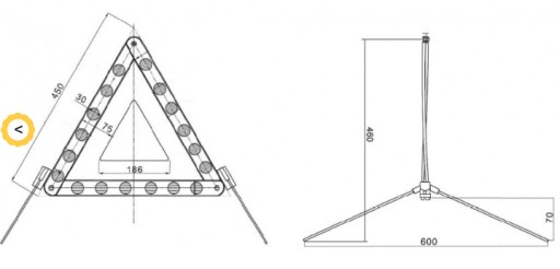 Wymiary trójkąta: 60 x 60 x 46 cm (Dokładne wymiary na zdjęciu poniżej)