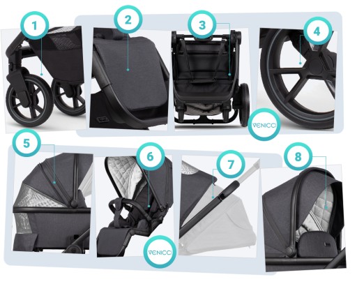 * wszystkie wymienione akcesoria są oryginalnymi produktami firmy VENICCI, które są dopasowane kolorystycznie do tapicerki i stelaża wózka, zdjęcia są poglądowe i mogą odbiegać od ich oryginalnego wyglądu.