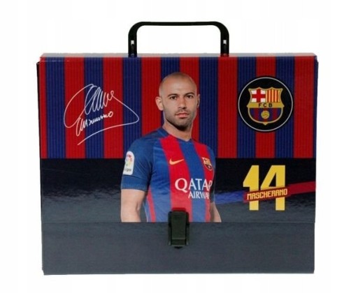 Na teczce wizerunek piłkarza klubu FC Barcelona - Neymar, Messi, Iniesta, Suarez lub Mascherano.