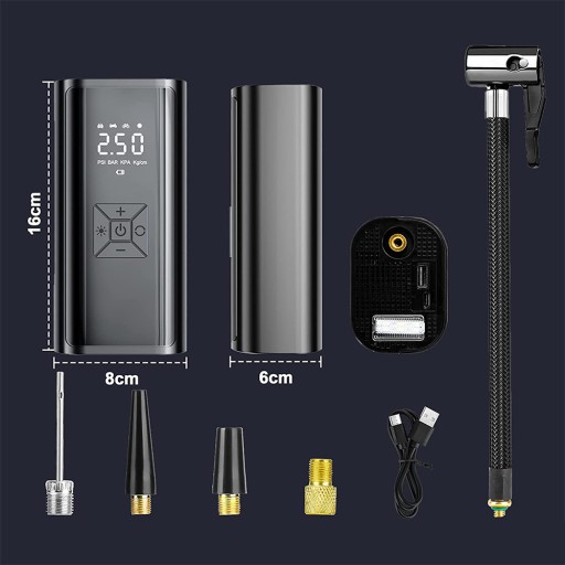 Ta elektryczna pompa powietrza obsługuje 3 jednostki napięcia (bar, bar, kpa) i istnieją cztery tryby pracy, wspomaganie pompowania piłek, opon rowerowych, opon motocyklowych i opon samochodowych.
