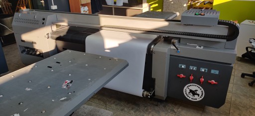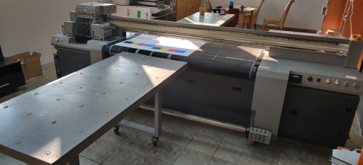 Konstrukcja urządzenia jest wykonana z wysokiej jakości podzespołów od najlepszych światowych producentów. Urządzenie jest przystosowane do intensywnej i wydajnej pracy z wysokim obciążeniem produkcyjnym, nawet w trybie 24 h/ 7 dni w tygodniu. Posiada hybrydową konstrukcję: pas transportowy + dostawiany stół. Daje to możliwość drukowania na elastycznych materiałach rolowych i sztywnych podłożach (wys. Do 50mm i waga 50 kg/m2). Obszar zadruku 1,6m x bez ograniczeń.