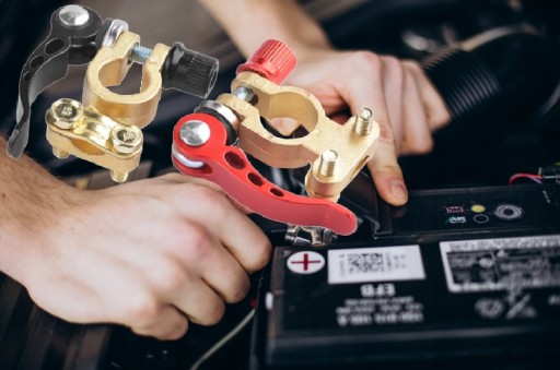 Zestaw wysokiej jakości klem do akumulatora z zaciskami, zapewniające doskonałe przewodnictwo elektryczne.