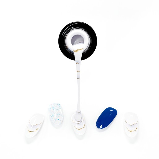 - Gel Stickers Easy On M10 – błyszczące i marmurkowe wykończenia w kolorze niebieskim oraz biało-złotym,
