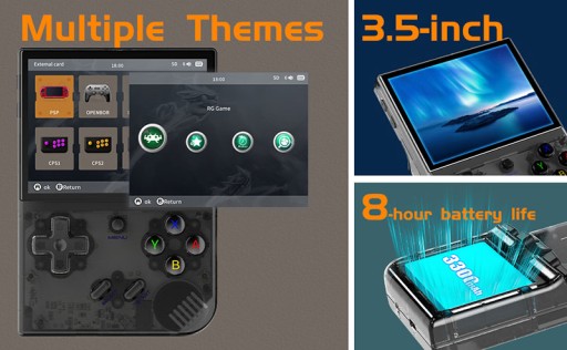 Ekran HD i Pojemna Bateria - 3.5-calowy ekran IPS o pełnym kącie widzenia, pełna laminacja OCA, rozdzielczość 640x480, wąski design ramki. Wyposażony w efektywną baterię litowo-polimerową o pojemności 3300mAh, zapewnia ultra-długi czas czuwania i do 8 godzin gry. Ładowanie jest wygodne dzięki ładowarce 5V/1.5A.