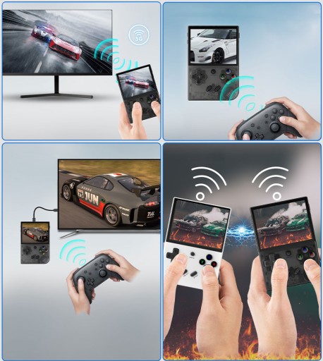 Dodatkowe Funkcje - RG35XX Plus obsługuje 2.4/5G WIFI, Bluetooth 4.2, bezprzewodowe kontrolery 2.4G oraz przewodowe, połączenie z kontrolerem Bluetooth, wyjście H-D-M-I do telewizora dla większego doświadczenia gamingowego. Dodatkowe funkcje obejmują wibracyjny silnik, parowanie online WiFi, strumieniowanie oraz funkcje zapisywania, wczytywania gier, ulubionych i ostatnio używanych folderów.