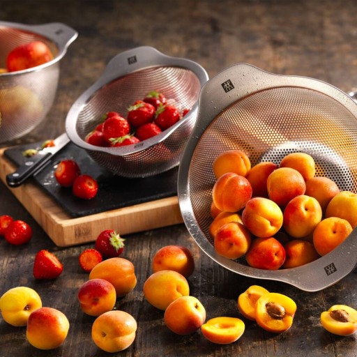 Sitko Table ze stali nierdzewnej marki Zwilling doskonale nadaje się do mycia oraz płukania owoców i warzyw oraz odcedzania innych produktów takich jak makaron lub ziemniaki. Technologia 18/10 oznacza wykonanie z mieszanki zawierającej 18% chromu o właściwościach antykorozyjnych oraz 10% niklu, który zapewnia jasność i wysoki połysk metalu. Gwarantuje to trwałość, bezpieczeństwo i wygodę użycia produktu. Został zaprojektowany by doskonale pasować do garnków i patelni Zwilling co ułatwia przechowywanie produktu. Możliwość mycia w zmywarce.