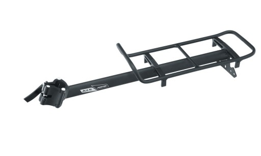 Aluminiowy bagażnik do sztycy podsiodłowej Ø 25,4 - 32mm Gumowa podkładka dla lepszego uchwytu i ochrony lakieru sztycy maksymalne obciązenie 10kg Uchwyt montażowy do lampki lub odblasku