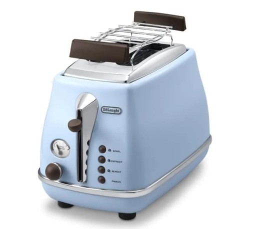 Toster De'Longhi CTOV 2103.AZ to urządzenie posiadające 6 stopni przyrumienienia w zależności od potrzeb i preferencji. Model wyróżnia funkcja extra lift ułatwiająca wyjmowanie małych kromek, ruszt do podgrzewania bułek i rogalików oraz przycisk umożliwiający zatrzymanie opiekania.