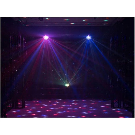 - Funkcje: płynna zmiana kolorów, blaknięcie kolorów, ściemniacz, ustawienia stroboskopowe, kierunek obrotów i prędkość ustawiana trybie auto i przez DMX; Master / Slave