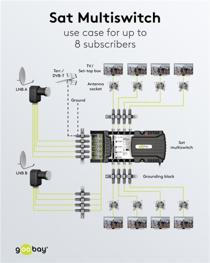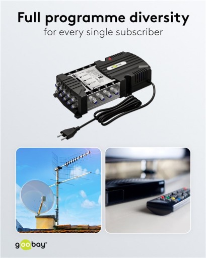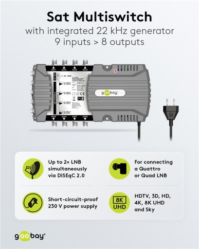 Multiswitch jest wygodnym rozwiązaniem umożliwiającym podłączenie kilku urządzeń do odbioru telewizji i radia w tym samym domu do jednej anteny satelitarnej. Przełącznik zapewnia, że każdy z 8 uczestników może cieszyć się indywidualnym programem - dla maksymalnej elastyczności odbioru telewizji.