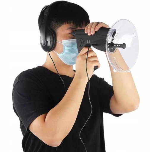 Paraboliczna antena skupiająca dźwięk pozwala na świetny odbiór dźwięków, a zintegrowany obiektyw z przybliżeniem x8 pozwala na obserwacje np. nasłuchiwanego ptaka lub podsłuchiwanej osoby