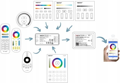 Do zarządzania jednym źródłem światła możesz użyć aż czterech urządzeń. Wykorzystując panel sterujący, tradycyjny pilot czy mostek WiFi możesz dobrać odpowiednie zestawienie.