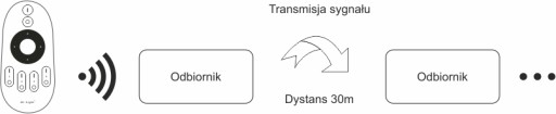 - ☝ ODBIORNIK posiada funkcję automatycznej transmisji sygnału, co przy zachowaniu 30m odstępów między kolejnymi kontrolerami, pozwala uzyskać nieskończony zasięg.