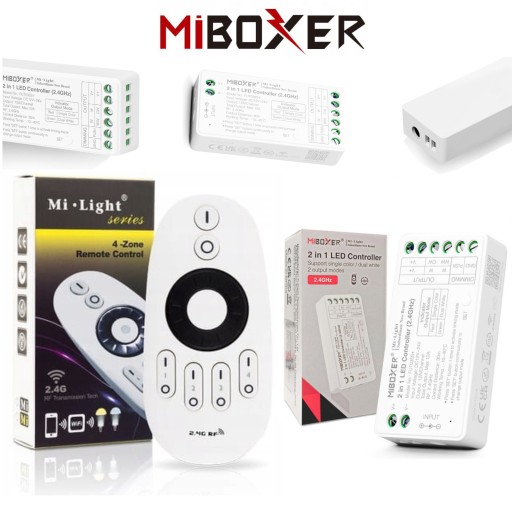 Odbiornik MiBOXER umożliwia sterowanie taśmą LED. Połączenie odbiornika z pilotem odbywa się przy pomocy fal radiowych o częstotliwości 2.4GHz. Odbiornik montowany jest pomiędzy taśmą LED a zasilaczem, dlatego można go dodać na każdym etapie montażu taśmy.