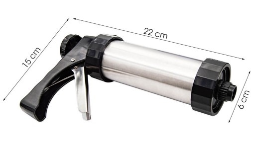 Wykonana z najwyższej jakości tworzywa sztucznego oraz stali nierdzewnej maszynka do ciastek, to produkt doskonały do tworzenia domowych wypieków. Wystarczy nałożyć ciasta do tuby, wybrać odpowiednią końcówkę, a następnie keksami formować ciasteczka. Przedmiot może być również wykorzystywany jako dekorator do ciasteczek. Zamiast ciasta, do tuby nakładamy krem i nasze wypieki mogą wyglądać jak z bajki.