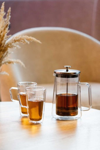 ✅Proces przygotowywania napoju staje się niezwykle prosty – wystarczy nasypać odpowiednią ilość mieszanki, zalać gorącą wodą, odczekać, aż napój osiągnie pożądaną intensywność, a następnie delikatnie nacisnąć tłok z umieszczonym w spodniej części sitkiem. Dzięki tej konstrukcji, fusy zatrzymują się na dnie, a w szklance pozostaje klarowny napar, gotowy do degustacji.